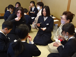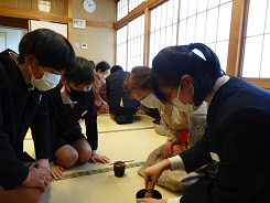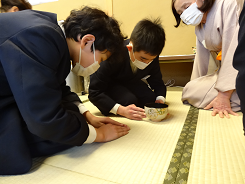 24日(金)に6年生は、「お茶会」を行いました。講師に、野々市市茶道協会の方々を招き、床の間の意味やお茶の作法を学び、自分たちでお茶をたてて飲みました。「亭主」が「お客」に対するおもてなしの心を実際に触れることで、おもてなしを味わうことができた素敵な時間となりました。