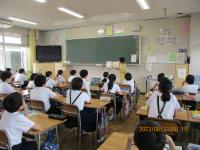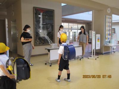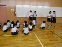 あいさつ運動2日目、朝から元気な声が玄関に響きわたりました。2時間目にたてわり活動で、平和に関する読み聞かせがありました。6年生が下級に対し平和に関する絵本を読んでくれました。