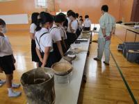 6年生の社会科では、県の埋蔵文化センターの出前講座が開催されました。縄文時代についての座学から、黒曜石をつかってのナイフ体験や火起こし体験など、とても楽しい充実した講座でした。野々市市教育委員会の学芸員の講座もあり、館野小学校の名前の由来である「館中」についての説明もありました。