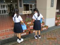 昨日までの大雨が嘘のように,快晴に恵まれました。PTAの皆様に玄関前に,ベコニアやマリーゴールド、ブルーサルビア等を植えて頂きました。人権の花とともに玄関前が華やかになりました。ありがとうございました。