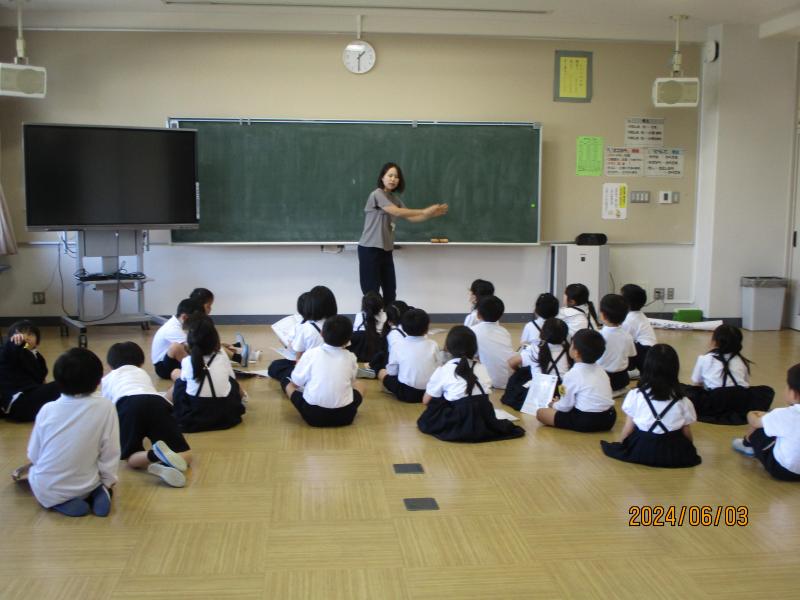 昼休みに、絵本の読み聞かせボランティアさんが来校し、「おはなしかい」がありました。目をまるくし絵本読み聞かせを聞き入っていました。