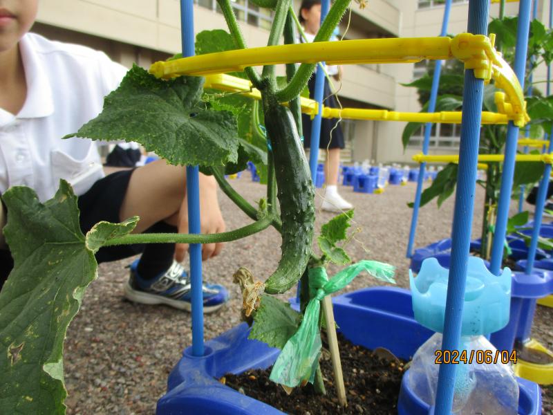 野菜も収穫でき、朝顔も順調に伸びています。
