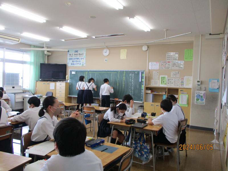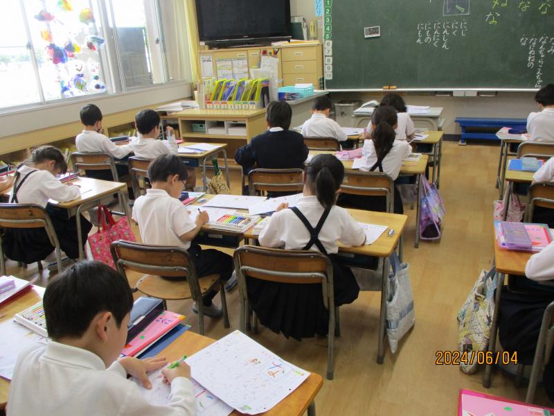 1年生の教室です。先生が教室に来る前の様子です。自分たちで考えてしっかり準備しています。