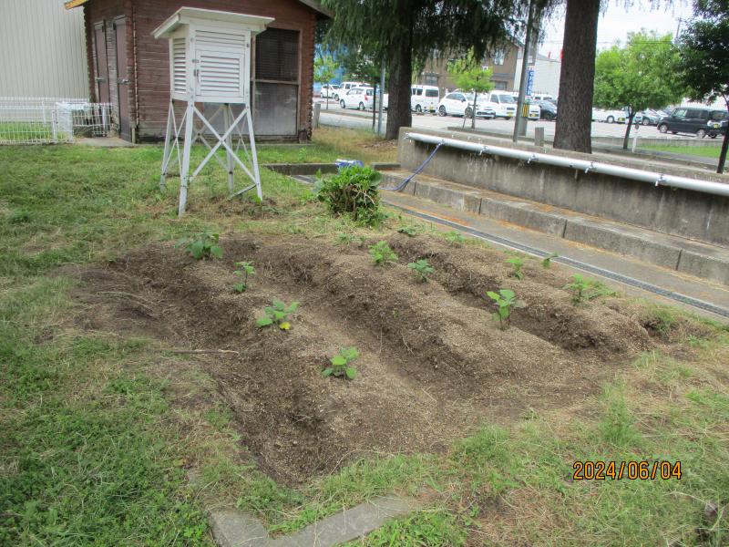 3年生理科のひまわりやホウセンカ、4年生のヤーコン、わかばの野菜も順調です。