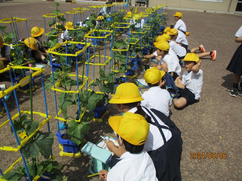 2組は朝顔の観察をしていました。