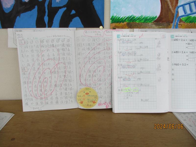 4階の5年生の廊下に自主学習ノートが掲示したりました。覗くととても素敵で、まとまっているノートでした。是非、チャレンジして欲しいと思います。