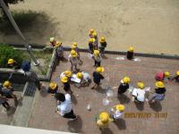 今週に入り、天気が安定せず昨日も大雨のため運動場が使えず、運動会練習はできませんでした。2枚目は今朝にはすかっり水もひき、早朝から先生方が今日の全体練習の準備をしてくれました。今日は開閉会式や応援の練習をしました。
