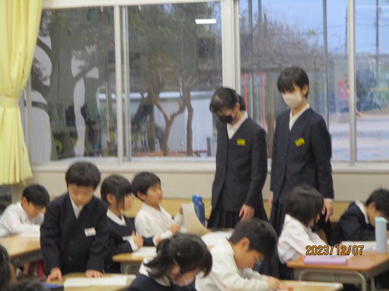 朝の1年生の教室の1コマですしっかり、クロームブックを用意して朝学習の準備しています。6年生のプチ先生が1年生の教室で来てくれサポートしています。