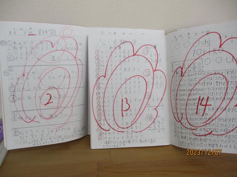 3階廊下には、3年生の自学ノートが掲示していました。頑張っている自学ノートです。2冊目が既に終わっている子もいました。
