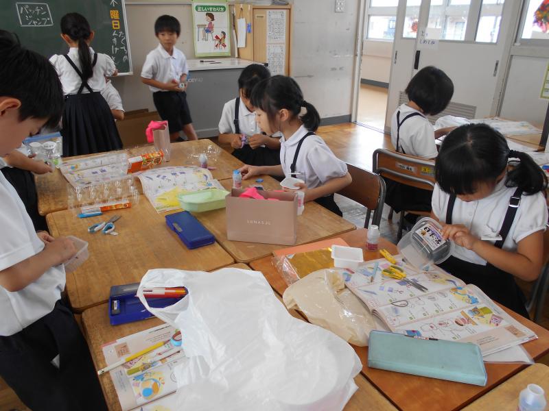 2年生の図工です。休み時間にもかかわらず、楽しそうに活動を続けていました。