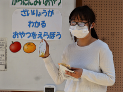 本日4限目に栄養士の河合先生をお迎えし、おやつに食べるおかしの食べ方について学習しました。チップス20枚でご飯一杯分。食べるなら体に良いおやつを食べましょうとお話していただきました。お話をしっかりと自分事として聴いていた1年生。「おやつも選んで食べたいな」など感想を上手にお話ししていました。