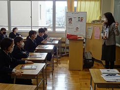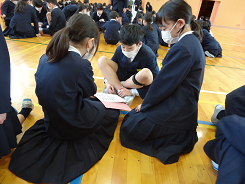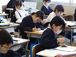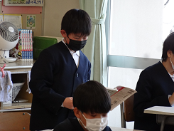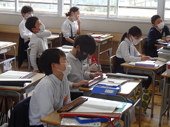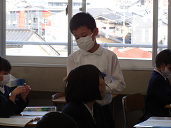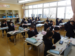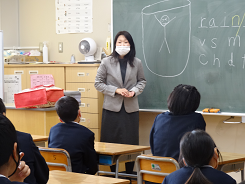今年度最後の外国語の授業があり、ALTのシェボーン先生の発音をしっかりと聞き「How are you?」「I’m ~」の表現に親しんでいました。リズムに合わせてじゃんけんをし、ジェスチャーを入れながらお互いにコミュニケーションをとっていました。相手を大切にすることを実感することができましたね。