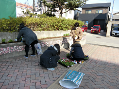 今年最後のピースガーデンの植え替えを3月4日(土)に行いました。参加した厚生部のみなさんのおかげで校門は美しく飾られました。今後、卒業式、入学式と大切な会が続きます。卒業生も入学生も在校生も、気持ちよく登校できることでしょう。本当にありがとうございました。