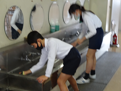 6年生がお世話になった学校へ感謝の気持ちを込めて掃除をしてくれました。黙々と掃除する姿。手洗い場でも冷たい水をものともせず、熱心に掃除をしていました。素敵な姿に思わず「もう一年残ってもらえないかな」と思ってしまいました。6年生、本当にありがとうございました。来週は16日は卒業式です。