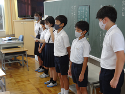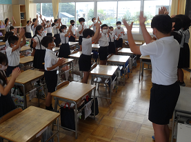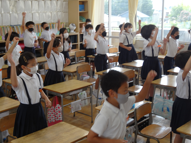 今週から朝学習の時間を利用し、運動会の応援練習を行っています。感染対策から大きな声は出せないので、拍手や動きでの応援です。3年生の教室では6年生が応援の仕方を一生懸命教えていました。20日には全校での応援練習があります。子どもたちの主体性を大切にしながら、久しぶりの運動会に向けて準備を進めています。