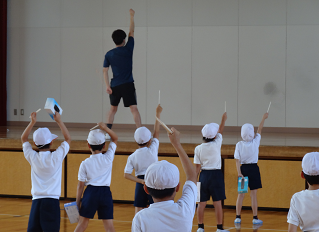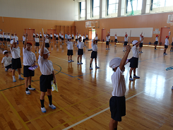 昨日から運動会特別時間割が始まりました。密を避け、熱中症対策を施しながら、どの学年も練習をスタートしました。3限には3年生が体育館で団演「ダイナミック琉球」の練習に汗を流していました。ステージ上の竹田先生は初めての運動会。子どもたちと一緒にキレッキレッに踊っていました!