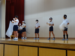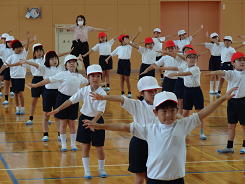 今日は全校応援練習が延期になったので、3限目は一年生が体育館で団演「はなさけ ぱっかん! たちのっ子」の練習をしていました。中西先生の踊りに合わせて、手を広げたり、ポーズをとったりと一つ一つの動作がとてもかわいい一年生でした。