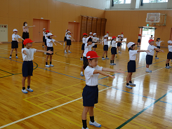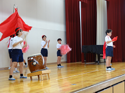 運動会の花形、高学年は一人技とフラッグを使った団演「One for all. All for one.」を行います。今日は体育館で5年生が練習をしていました。まだまだ静止できずよろめいているところもありましたが、本番では格好良い演技を披露してくれるはずです。お楽しみに。
