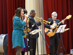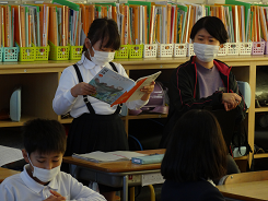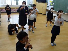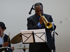 日曜日にフォルテで演奏されるBIGAPPLEの皆さんが本校へ演奏にきて下さいました。演奏が始まると一気にジャズの世界に引き込まれていました。どうしてジャズを始めたのですか?と子どもたちから質問。最後に6年生から英語での謝辞と花束贈呈をしました。リラックスできるひとときでした。