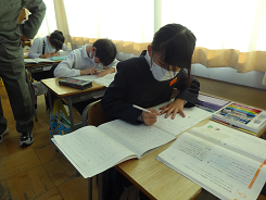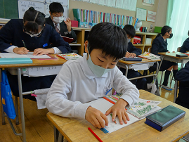3年生は「たから島のぼうけん」という教材で、「組み立て」にそって、わかりやすくわくわくする物語を書いて、お家の人に読んでもらおうというめあてを持って学習をしています。今日は3年2組の研究授業。竹田先生の指示に、一生懸命書いている姿がとても印象的でした。どんな物語ができるかな。こちらも楽しみです。