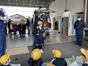 火事が一年で一番多いこの時期、3年生は社会科「地域の安全を守る働き」の学習で野々市消防署へ見学に行きました。火事を「はやく」「安全に」消すための消防署の工夫をたくさん見つけることができました。また、消すだけでは無く、火事を未然に防ぐ仕事もしていることに気づくこともできました。今後、寒さが一層厳しくなります。火の始末にはお気をつけ下さい。