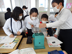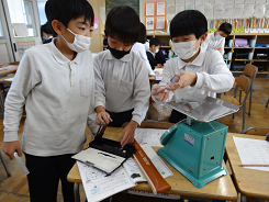 3年生は算数で基本単位「g」「kg」を習いました。今日は3年2組が台ばかりを使って身近な物の重さを計っていました。ある物を基準としていくつ分かを表していた低学年から、単位を使って正確に計る中学年の学習へ。6限目の授業でしたがどの子も楽しそうに計ったものをメモしていました。