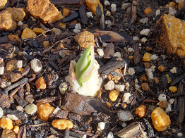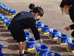 12月7日から二十四節気で「大雪(たいせつ)」に入りました。盛んに雪が降り、積もる頃ということですが、今日は太陽が顔を見せる気持ちの良い日となりました。この陽気に合わせたのか1年生が植えたチューリップも土から芽を出していました。それでも天気予報では今週水曜日から雪マークが見えます。北陸の冬がやってきそうです。12月6日に冬の歩き方について子どもたちへ指導もしましたが、ご家庭でも冬の歩き方についてお話願います。