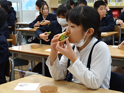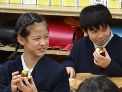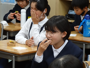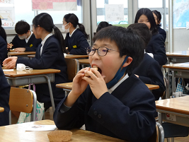 笑う 5年 総合的な学習の時間「もなか試食会」