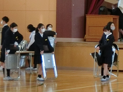 朝から5年生が頑張って昨日の卒業式の後片付けをしてくれました。長休みには通学班班長会が行われました。6年生が卒業し、学校は5年生を中心に回り始めました。意欲は十分。学校を引っ張っていく存在になってくれるでしょう。今後が楽しみです。