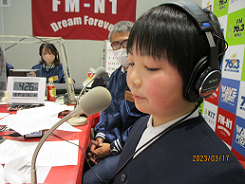 ふがく堂さんとコラボしてつくったもなかの宣伝を5年生はしています。ポスターだけでなく、FM-N1「ののいちde難関突破!」という番組の収録に子どもたちが出演させていただきました。すでにFM-N1のホームページに掲載中なので見てくださいね。放送は3月27日(月)14:00だそうです。