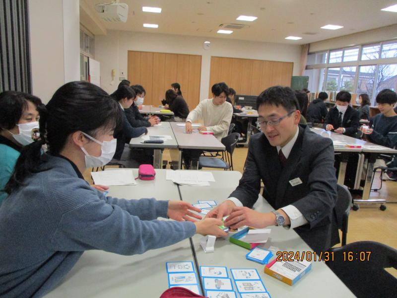 職員研修の様子です。野々市市がSDGS未来都市に認定されました。次年度以降に,本校でも積極的にSDGsについて取り組んでいきたいと考えています。その一環として、外部から講師を招き研修会を開催しました。子ども達に還元していきたいと思います。