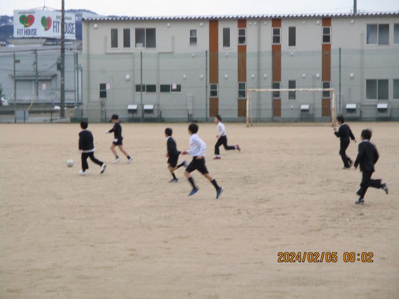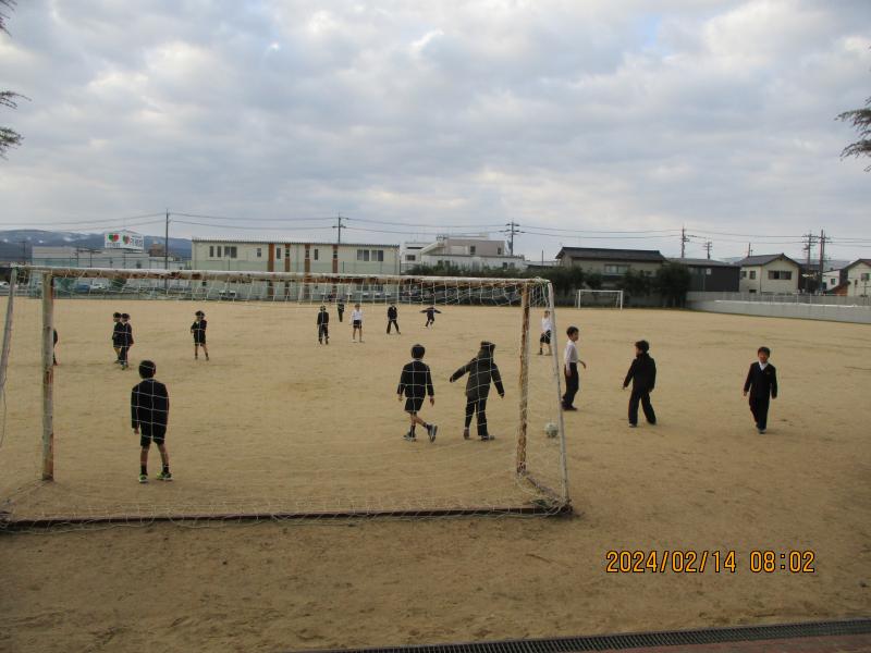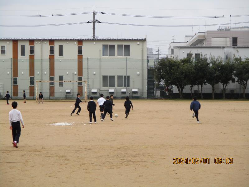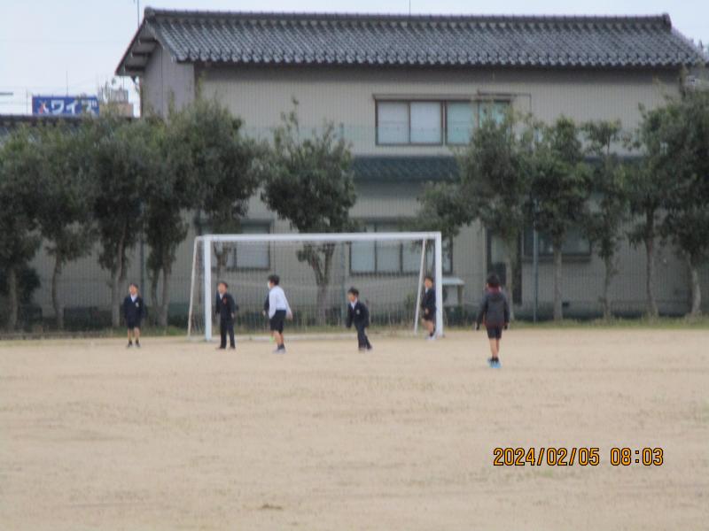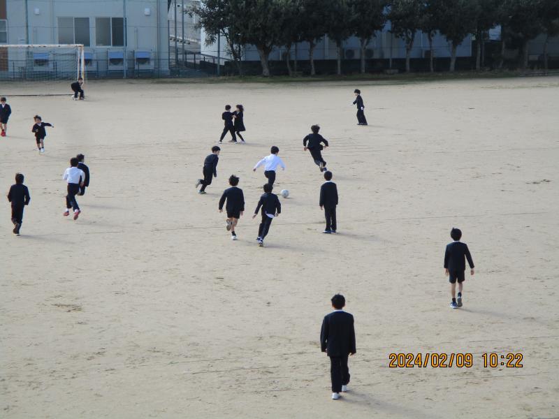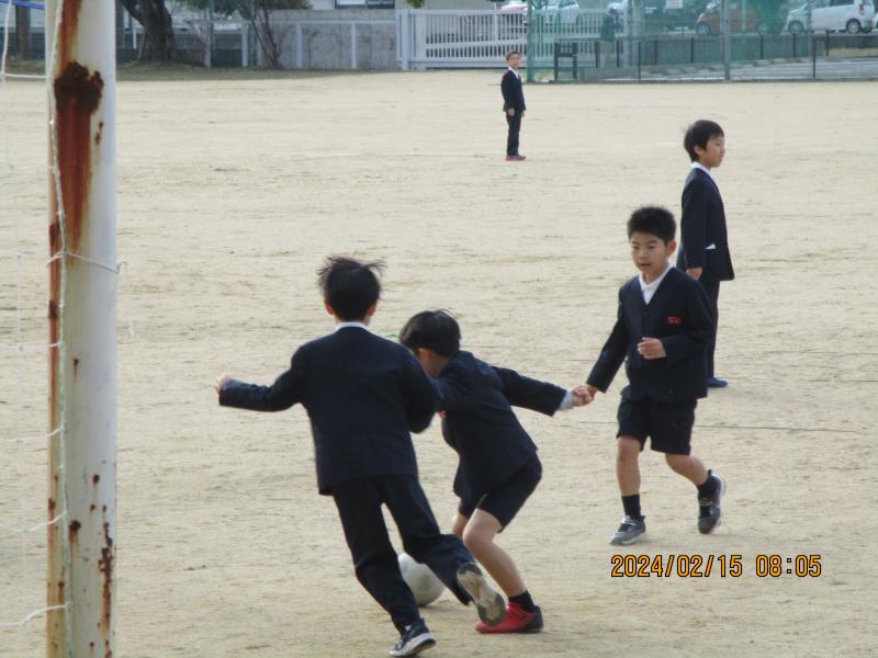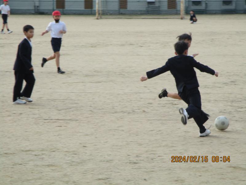朝のサッカーは4年生と2年生です。両足で蹴れる子もいます。
