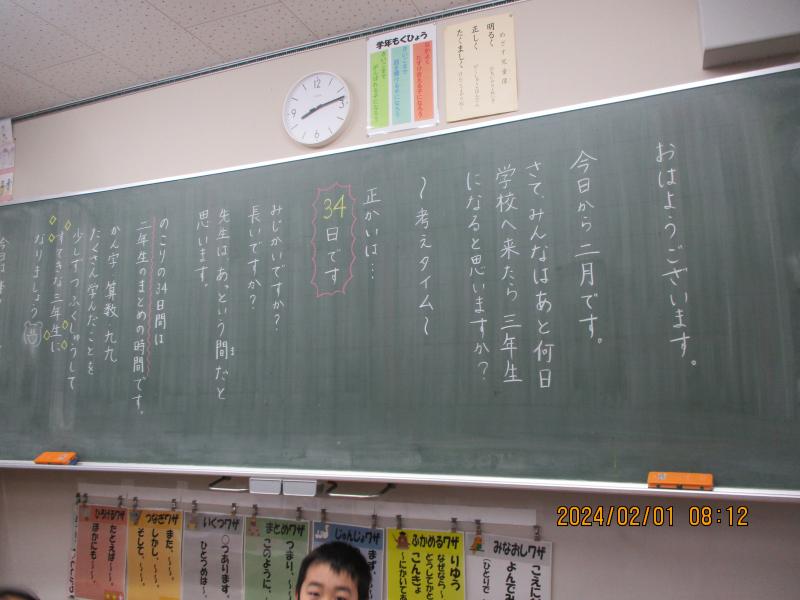 今日も暖かい日になりました。毎日、黒板にメッセージを書いている先生の黒板です。いつも感心しています。