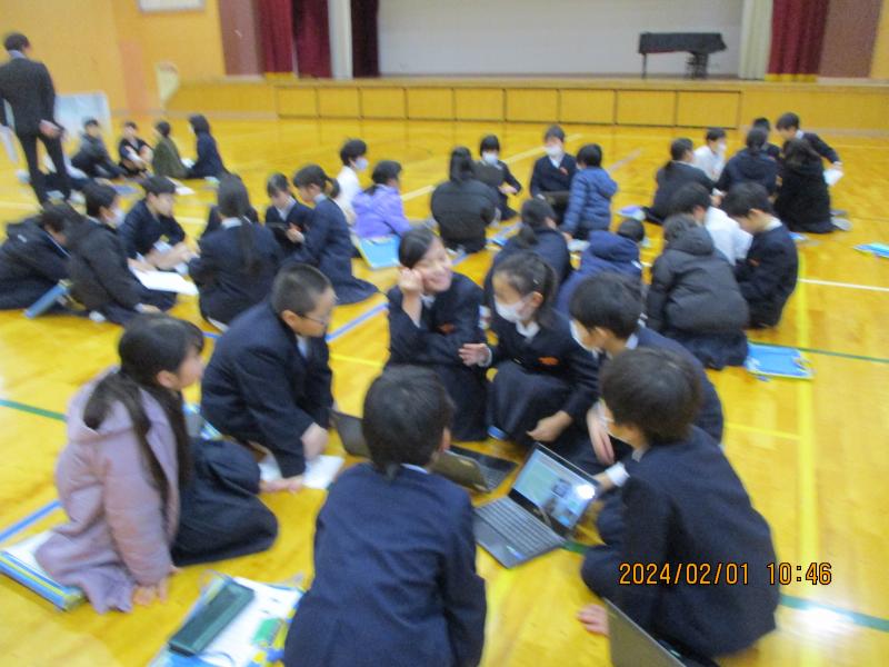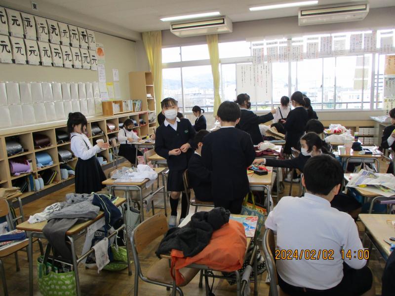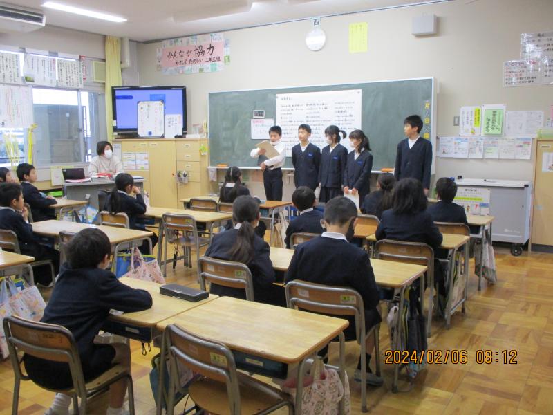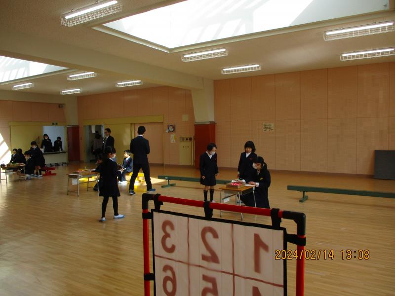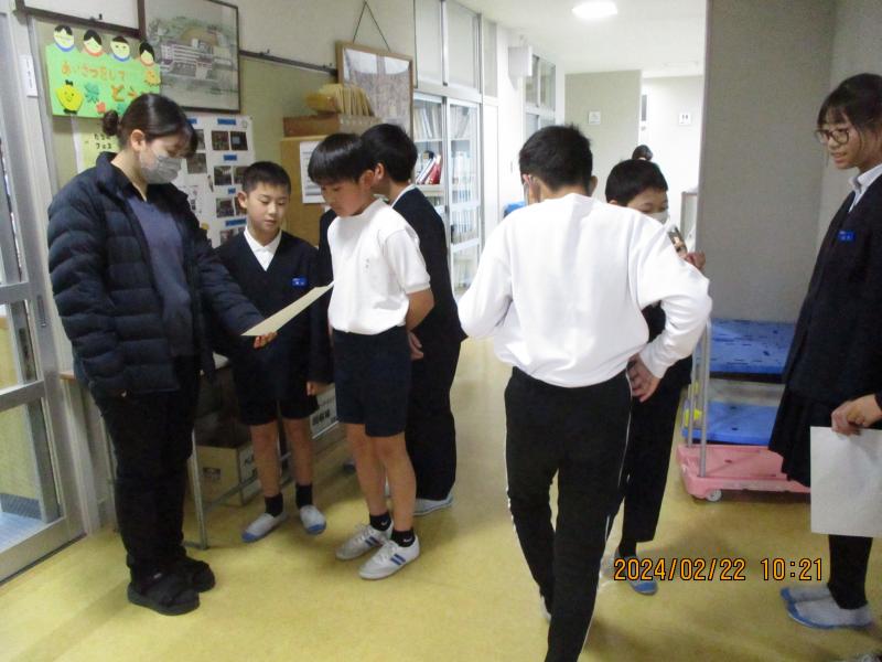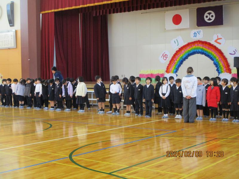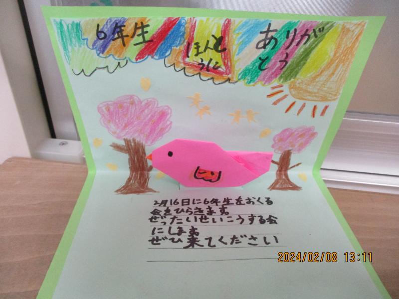 昼休みに、各縦割り班で「あらがとうの会」がありました。5年生が司会で、各学年が役割を分担して6年生へ感謝気持ちを伝えました。6年生の中には「まじで、うれしい」「ありがとうね」と感謝の言葉や涙ぐんでいる子もいました。