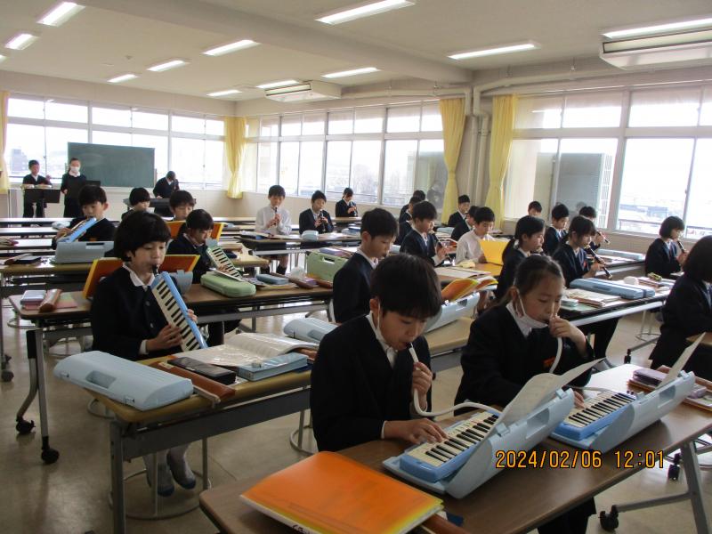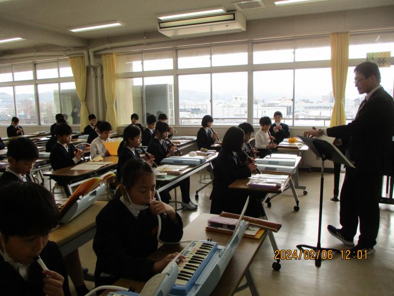 4年生の音楽では合奏をしていました。「負けないで、もう少し、最後まで走り抜けて」