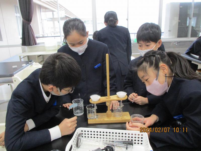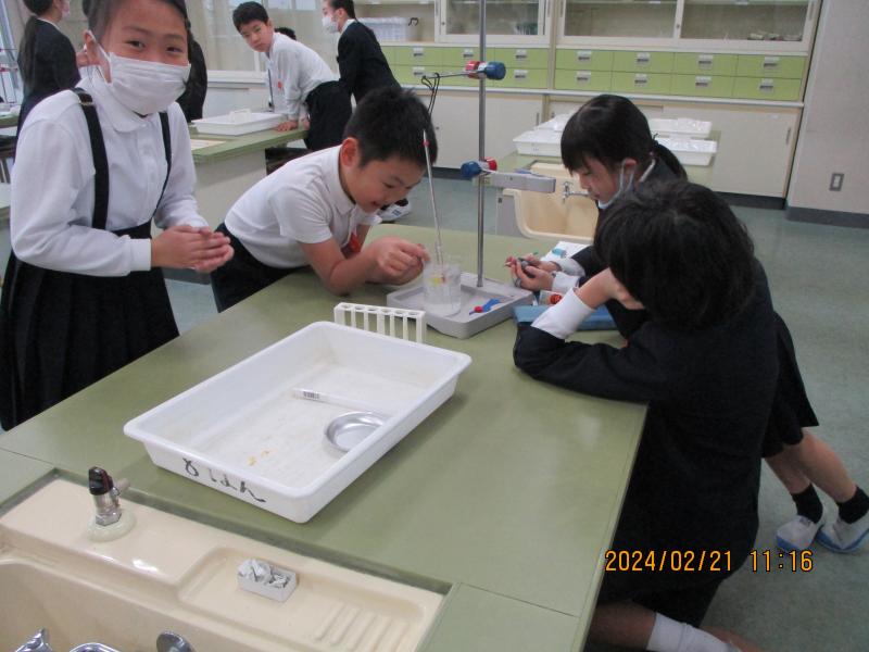 4年生の理科は、水が凍る凝固について学習していました。実験は楽しそうです。