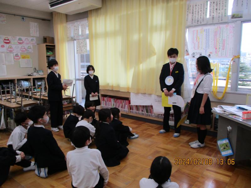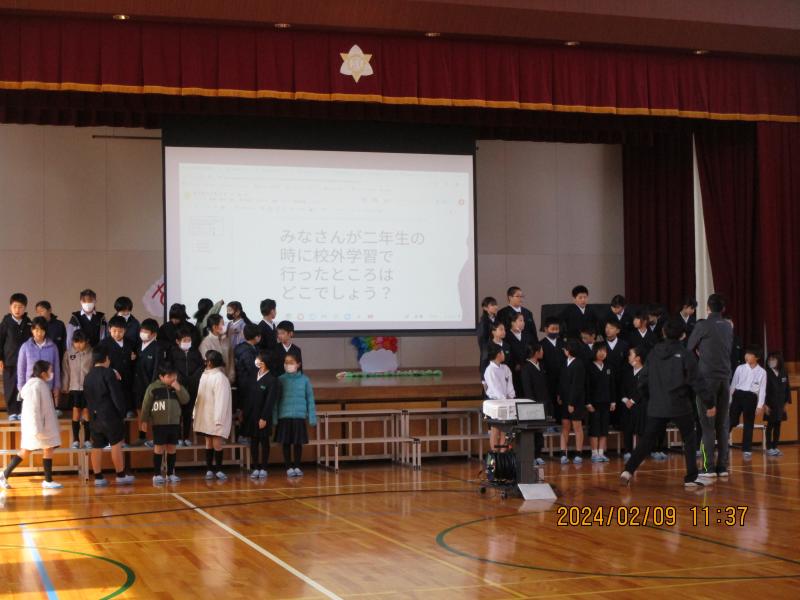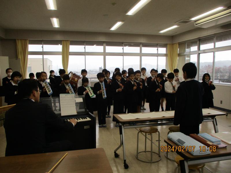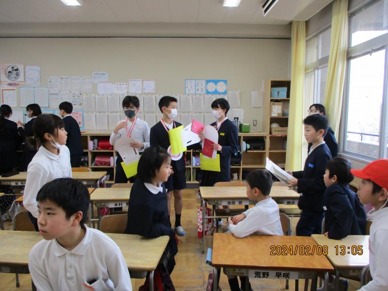 5年生が6年生を送る会の準備のため、1年生や2年生の教室に出向き、歌の練習や注意事項をお知らせしてくれています。頑張れ5年生!