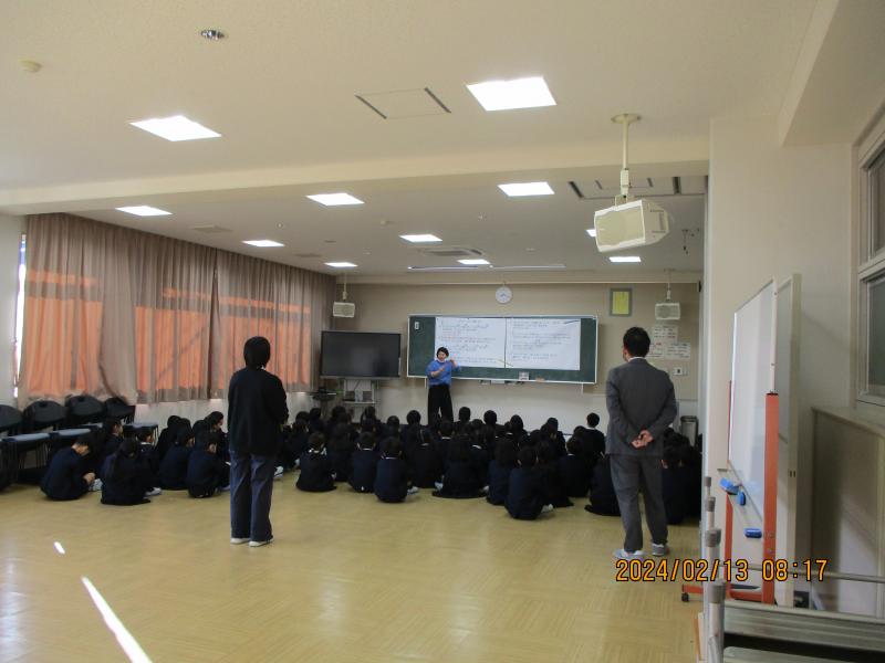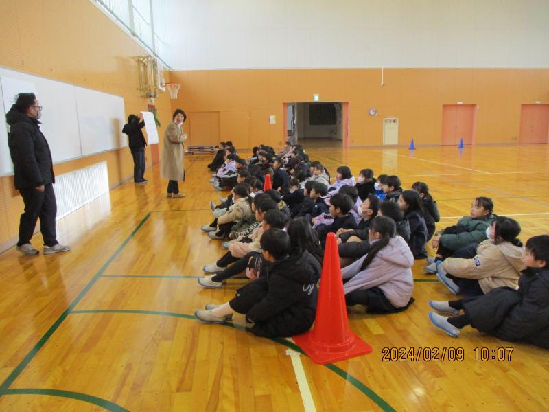 北陸大学の仲嶺先生をお呼びして、5年・6年生を対象に、心の健康について講義していただきました。リラクゼーション方法を学びました。