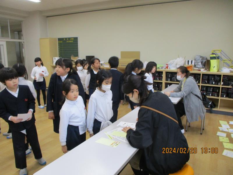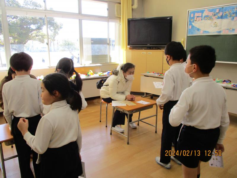 2年生の「九九マスター」に多くのボランティアのかた方がお手伝いしてくれました。今日は6の段~9の段で、少し苦労している児童もいましたが、楽しく合格したシールを貼ってもらっていました。