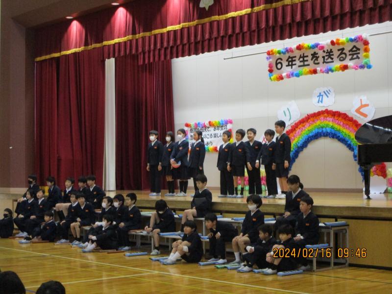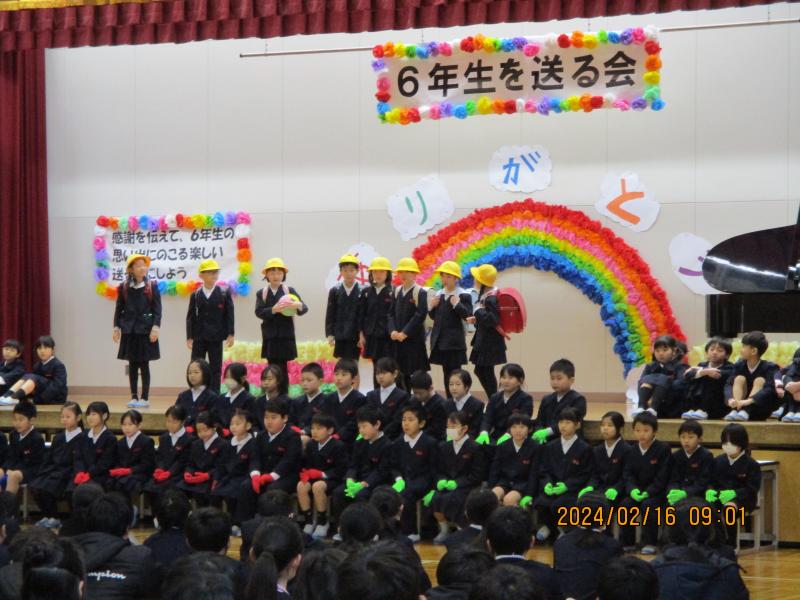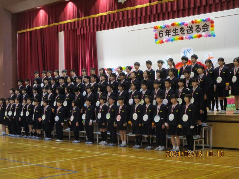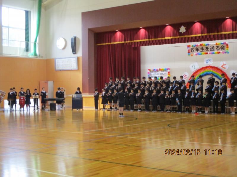 本日、6年生を送る会が開かれました。お世話になった6年生に日頃の感謝の気持ちを伝えることができた素敵な会になりました。6年生は、いよいよ卒業まで19日間です。在校生へ栄光の架け橋を架けて欲しい願っています。