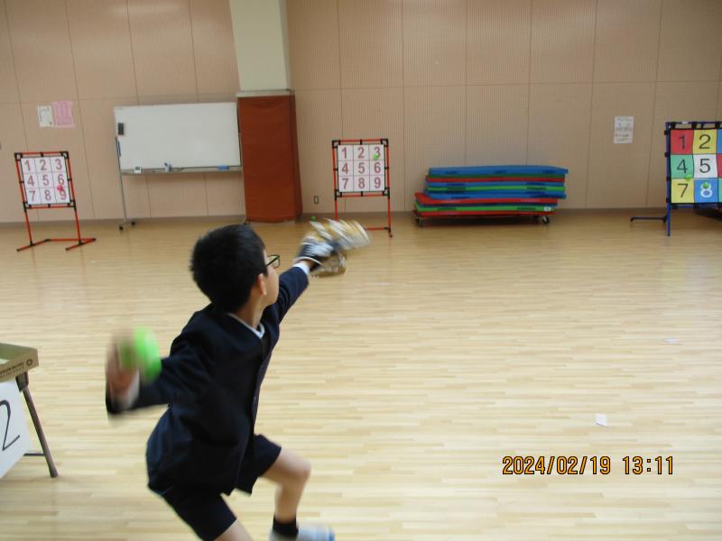 今日から、大谷選手のグローブをつけて、ストラックアウト大会が始まりました。今日は2年生がチャレンジしました。大谷選手の気分になって的を狙って投げていました。6年生がボランティアで手伝ってくれました。