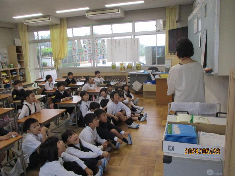 今日の朝学習には、絵本の読み聞かせボランテァイさんが来校してくれました。低学年を中心に読み聞かせをしていただきました。
