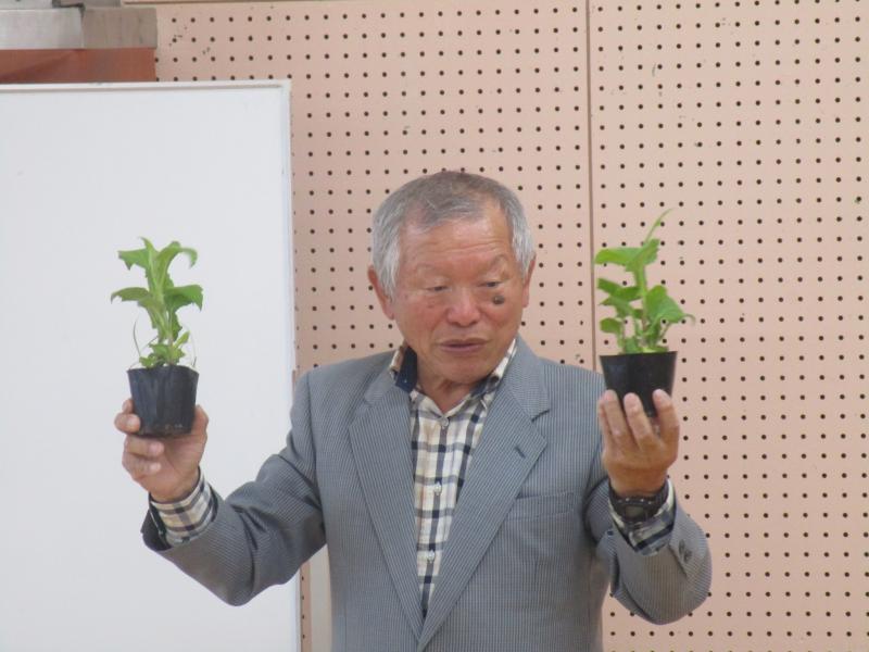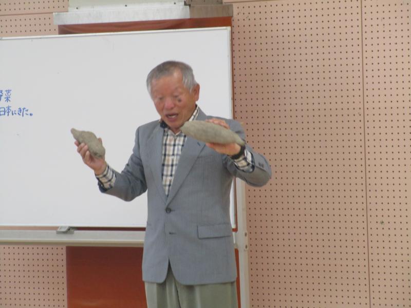 3年生の総合的な学習の時間でヤーコンを育てるので、ののいちやーこん倶楽部の小島さんが来校し、ヤーコンの苗を提供してくれました。