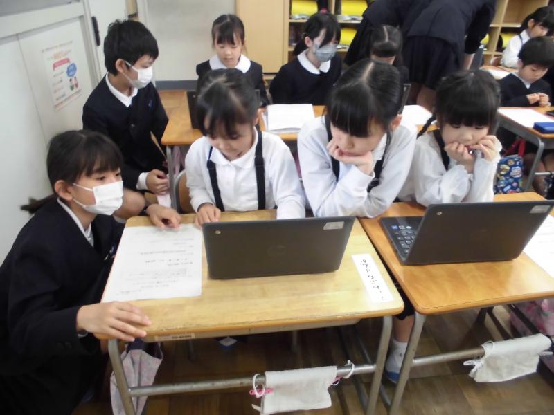 金曜日の朝学習はクロームブックを活用しています。1年生はお絵かきをしていました。