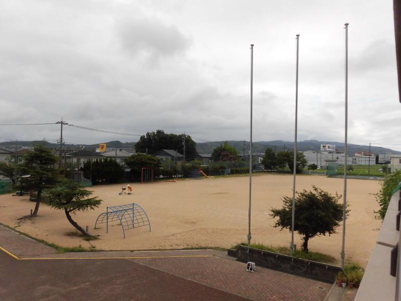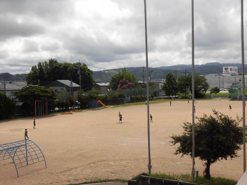 午前中は曇っていて、グランドでは学童の子ども達が,元気に活動していました。