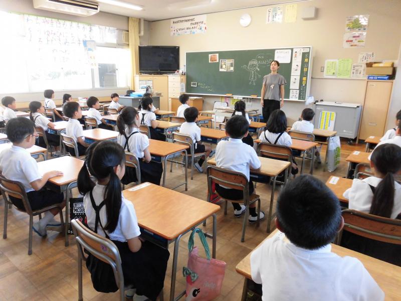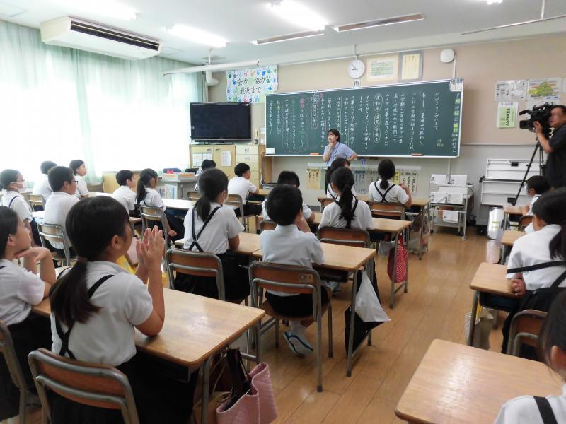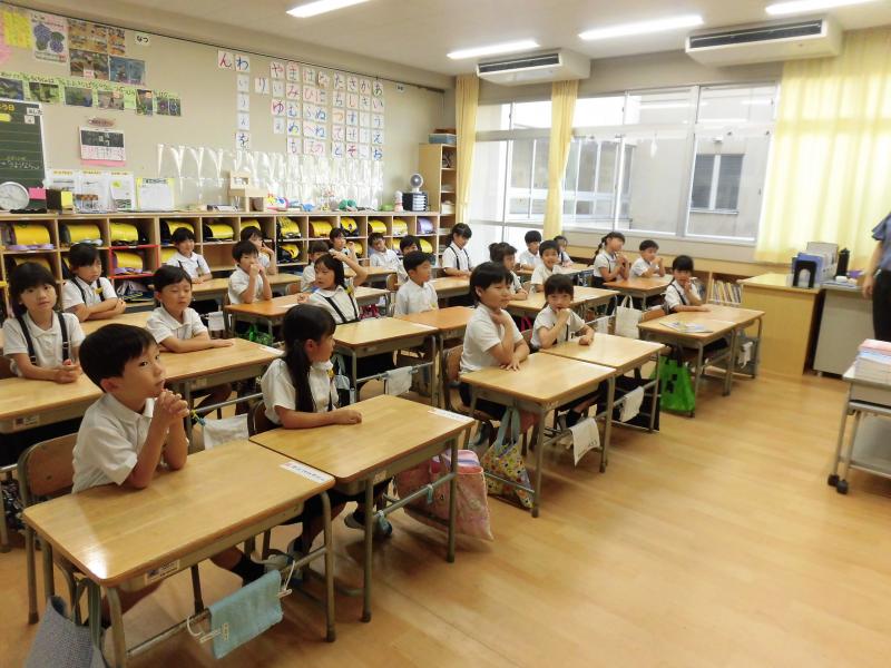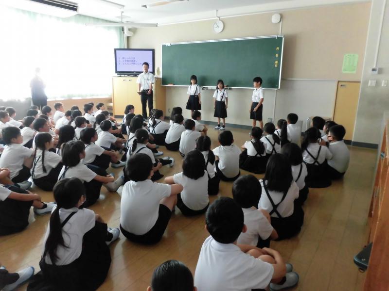 台風が心配されましたが、通常通り登校になりました。始業式は熱中症の心配もあり各教室へオンライン放送で開催しました。