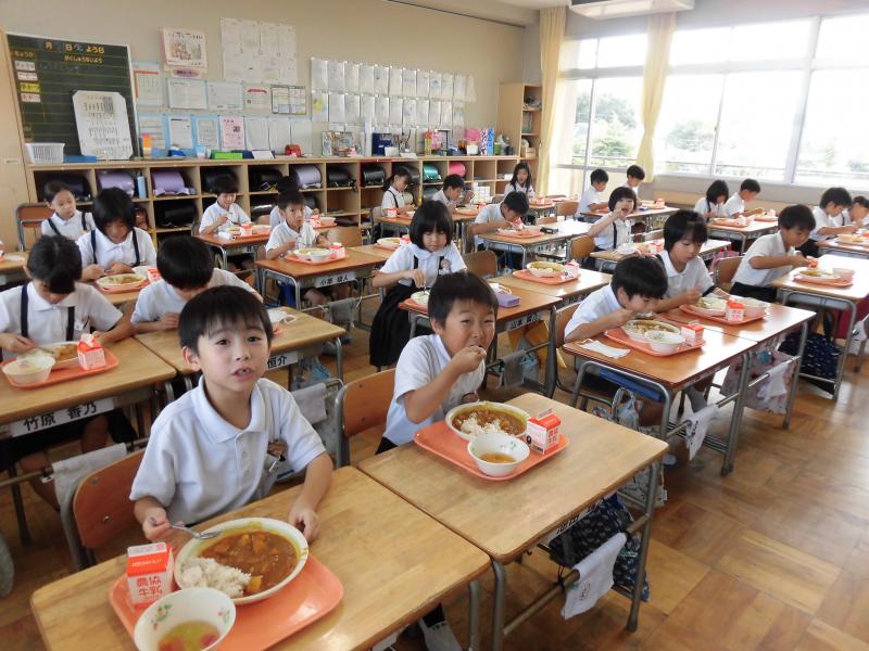 2年生は給食タイムです。カレーライスでした。