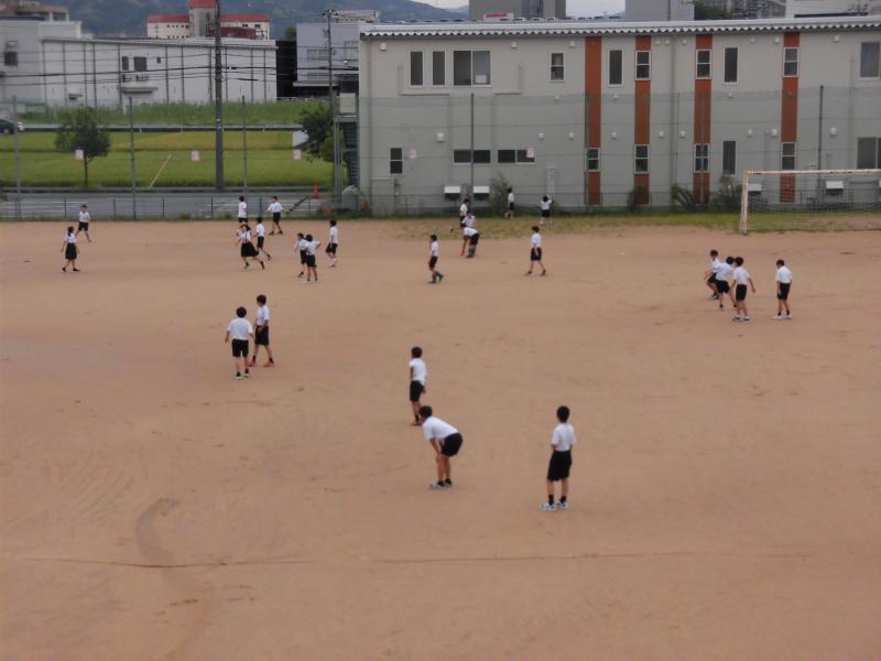 1年生と2年生は、運動場に出ての初めての練習です。自分の位置を確認して練習をしていました。