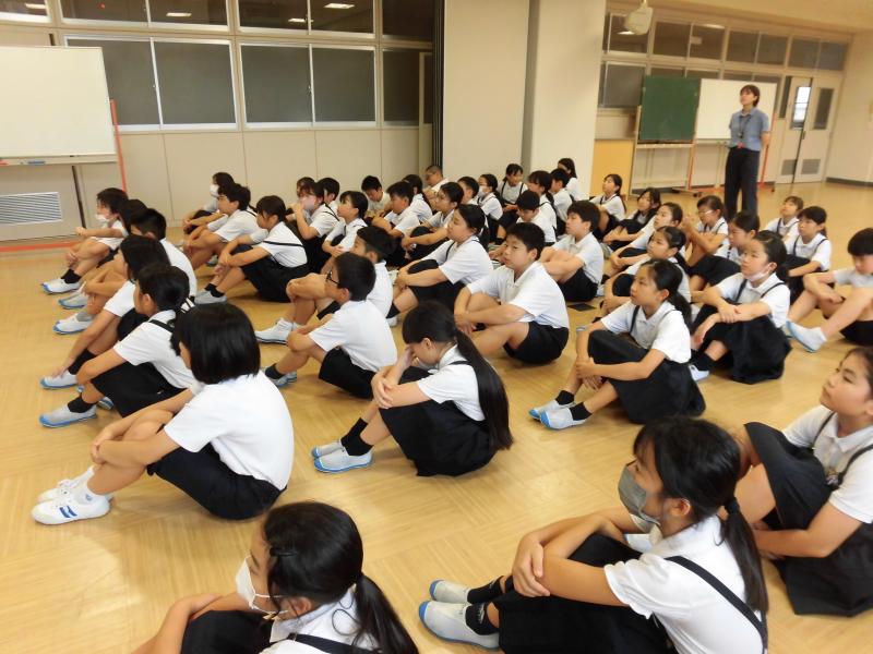 授業の様子です.4年生は2学期に学習に向け学年集会を開いていました。真剣な眼差しで話を聞いています。4年生は音楽会がありますよ!