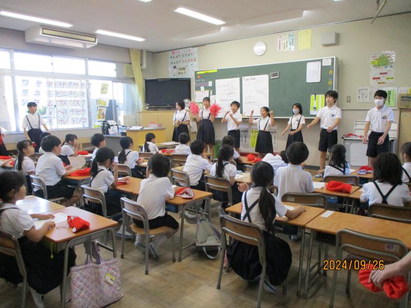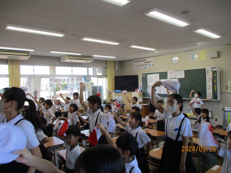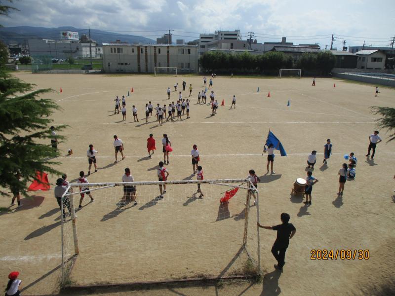 5限目には、各団に分かれ応援練習をしていました。